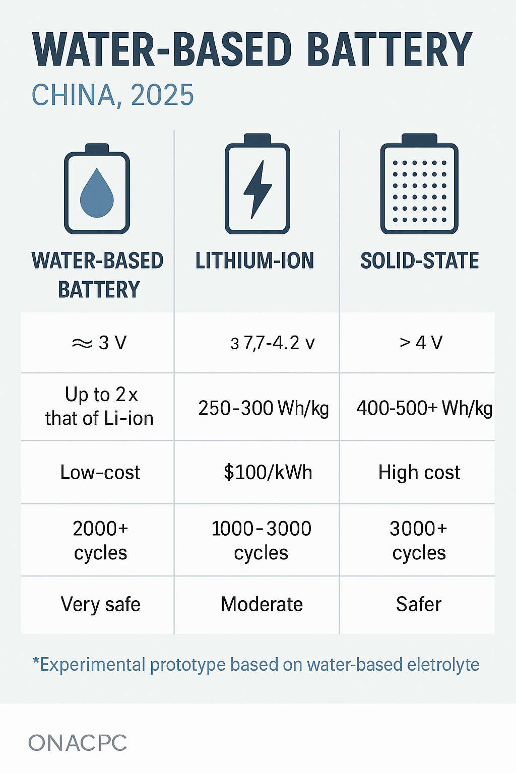 - Aqueous-electrolyte batteries designed for safer energy storage.